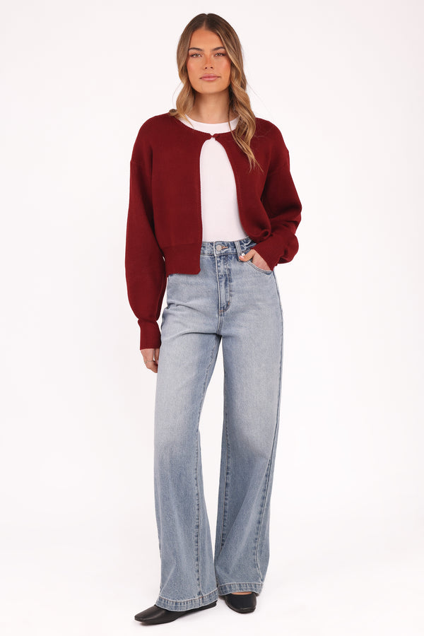 Upgrade your wardrobe with the Ripley Knit Cardigan in Berry, your next go-to layer for effortless style and comfort. Featuring a classic round neckline and long sleeves, this cardigan strikes the perfect balance between cozy and chic.