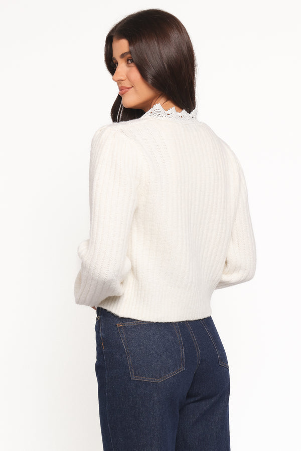 Add a touch of delicate charm to your look with the Silvie Lace Front Tie Cardigan. This cream-colored cardigan features an open front with a sweet tie closure, allowing you to style it your way.